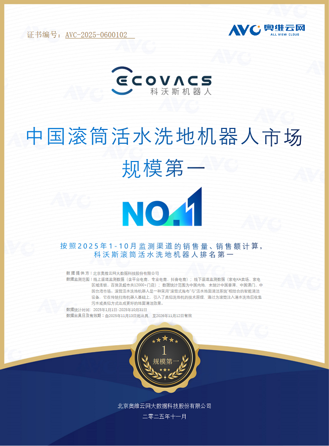 近日,泰斗阛阓征询机构奥维云网(AVC)发布认证,科沃斯机器东谈主斩获中国滚筒流水洗地机器东谈主阛阓范围第一。这份认证不仅详情了科沃斯滚筒洗地机器东谈主开发者、指引者的地位,更标记着科沃斯领先独创的滚筒流水期间旅途,已从行业立异认识升级为主流铺张遴选。
